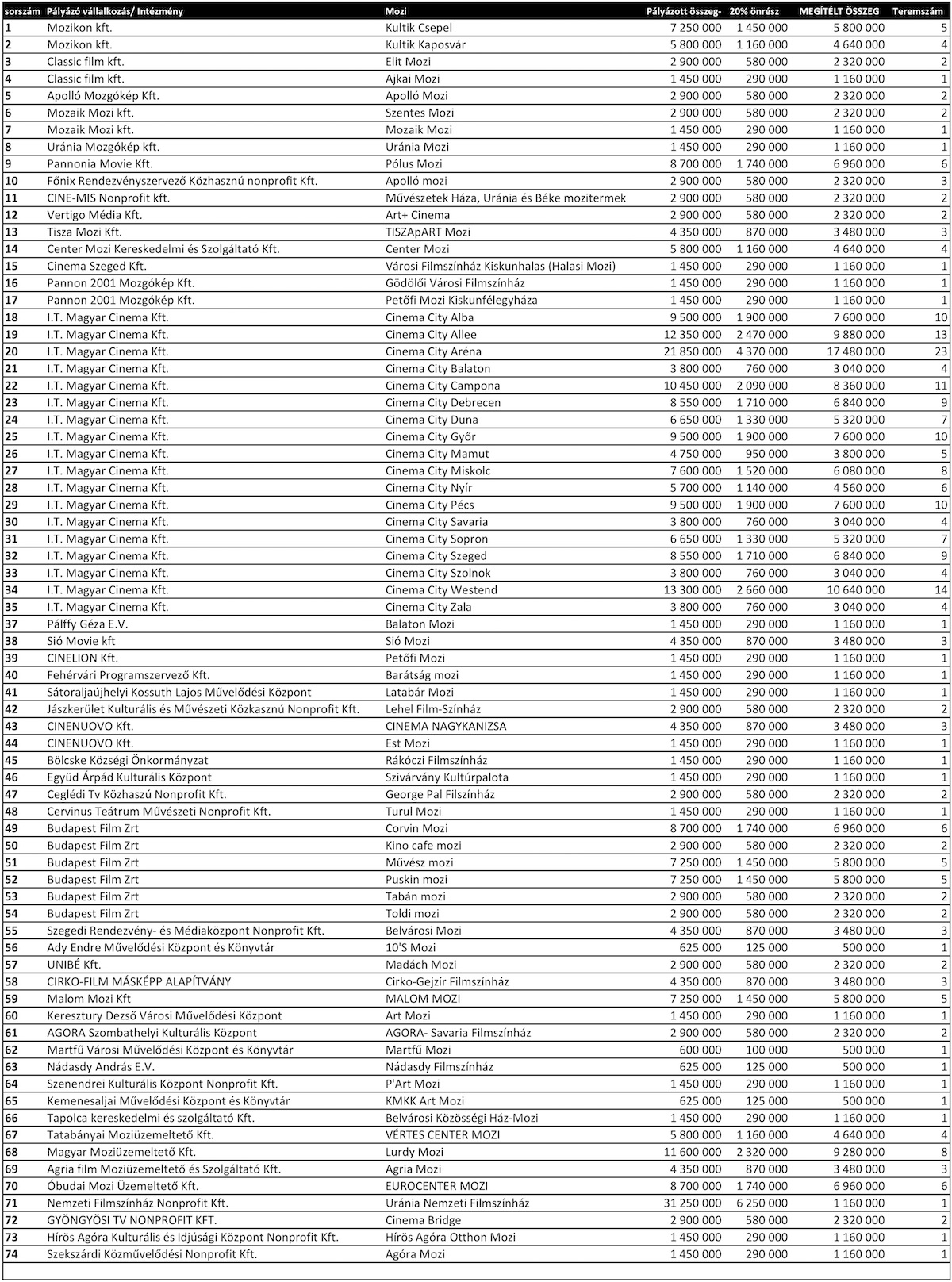 Nyilvánosak a "Vissza a moziba! - A magyar film hónapja" pályázat nyertesei.